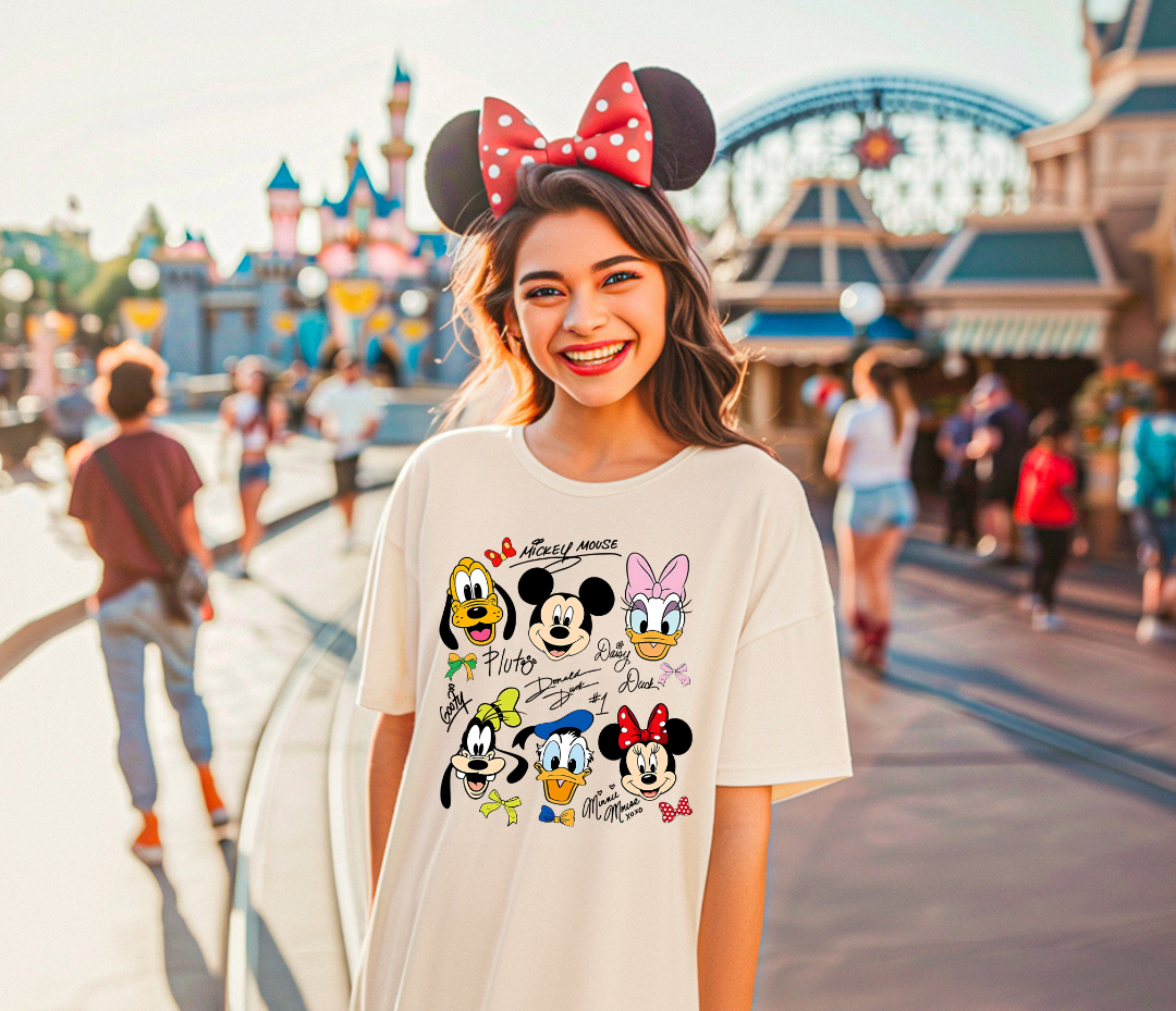 Capture the magic of meeting your favorite characters with our Autograph All-Stars tee! Featuring Mickey, Minnie, Donald, Daisy, Goofy, and Pluto — complete with their signature autographs — this shirt is the perfect keepsake for your magical vacation.