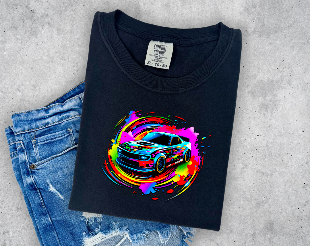 Get ready to roll in style! The Color Cruze t-shirt features a vibrant, multi-colored car design zooming through a bold, bright circle—perfect for little speedsters with big imaginations. A burst of color, a dash of fun—Color Cruze is where adventure begins!