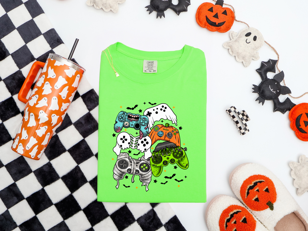 Level up your spooky style with the Creepy Controllers tee! Perfect for gamers who live for Halloween vibes, this design features haunted game controllers decked out in ghosts, pumpkins, and skeleton details. Whether you’re button-mashing through horror games or just showing off your love for gaming and ghouls, this tee is the ultimate combo of fun and fright. Soft, bold, and totally game-ready — it’s a must-have for every spooky gamer’s wardrobe.