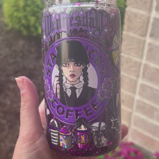 Brew up a little mystery with this Wednesday-inspired snow globe tumbler. Featuring swirling glitter, bold gothic details, and Wednesday’s signature moody charm, it’s perfect for coffee lovers who like their drinks as dark as their wardrobe. Whether you’re sipping cold brew, tea, or something a little more sinister, this tumbler keeps your vibes spooky and stylish all year long.