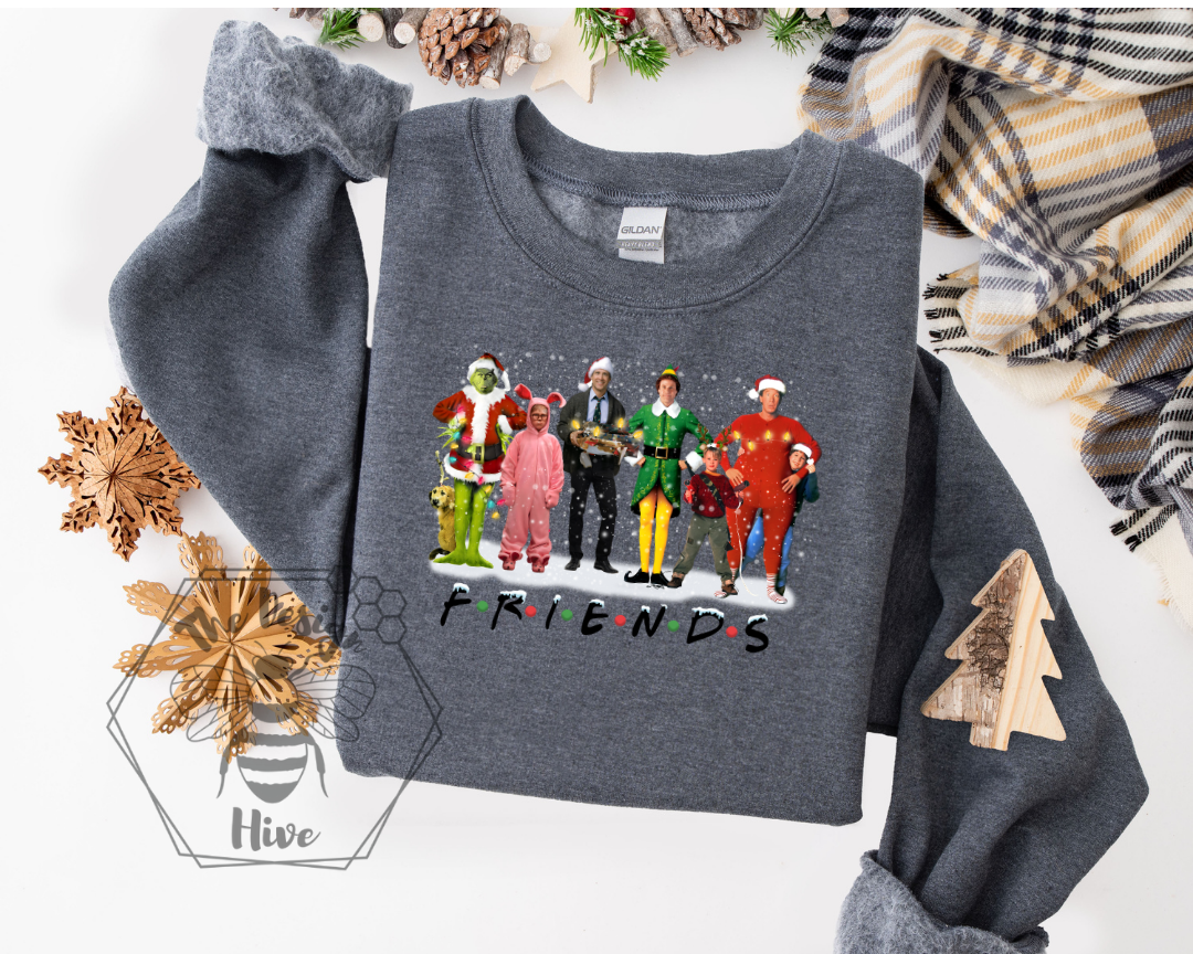 Celebrate the season with the ultimate Christmas crew! This cozy sweatshirt brings together your favorite holiday characters — from the Grinch to Buddy the Elf — all decked out and ready for some festive fun. A perfect mix of nostalgia, humor, and holiday spirit, it’s ideal for movie nights, cookie baking, or rocking around the Christmas tree.
