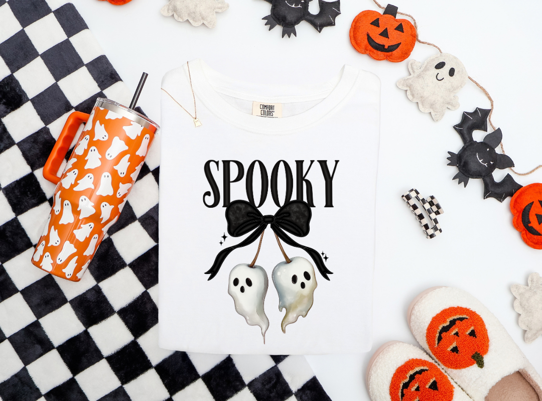 Add a touch of spooky elegance to your Halloween wardrobe with the Haunted Bow tee. Featuring a chic black bow adorned with two ghostly charms, this design blends creepy and cute for the perfect festive look. Whether you’re dressing up for fall fun, heading to a pumpkin patch, or just love a stylishly spooky vibe, this tee is a must-have for the season.