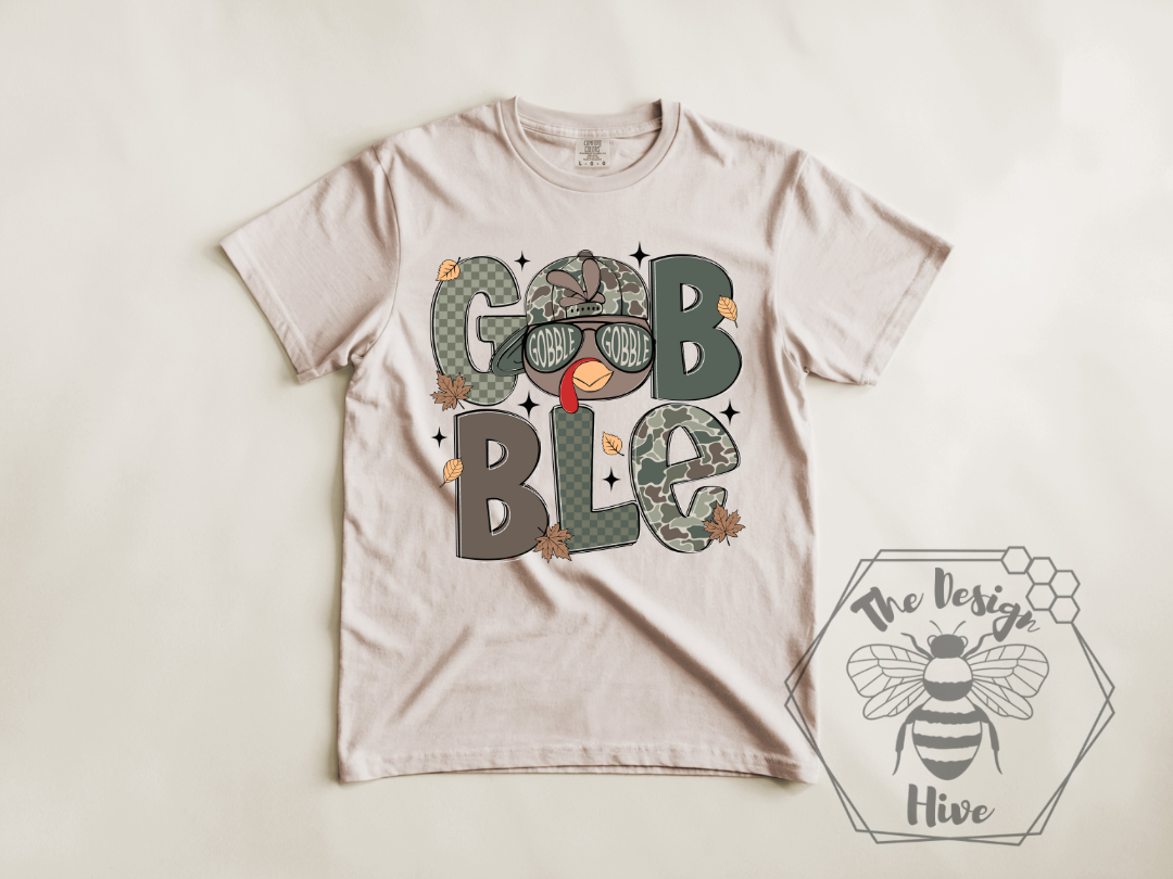 Get ready to gobble in style with the Huntin’ for Turkey Tee! This playful camo-themed design features bold block letters, autumn leaves, and the cutest turkey in disguise — perfect for anyone who loves the great outdoors and a good laugh at Thanksgiving.