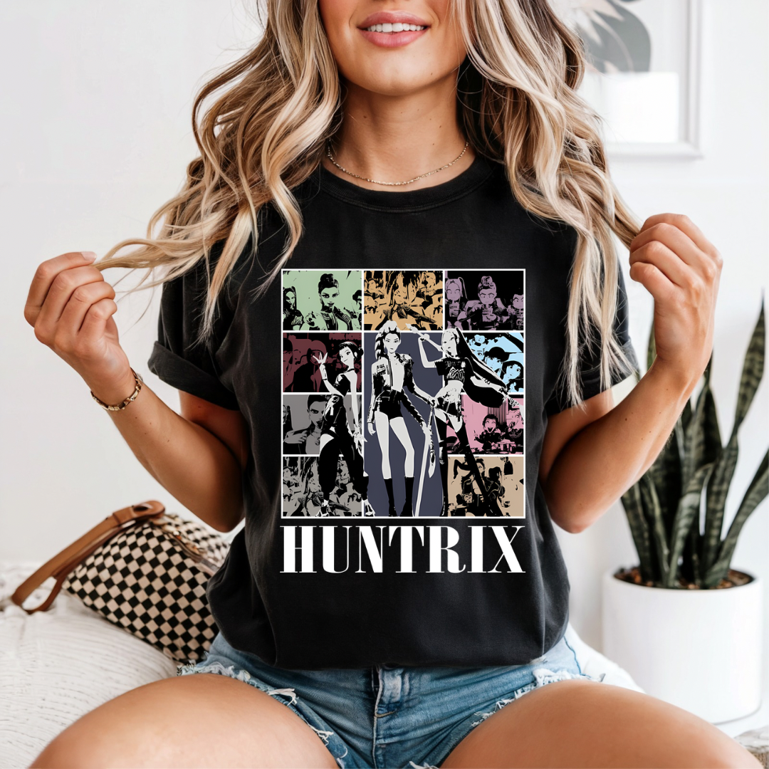 Turn heads with the Huntress Power Grid tee! Featuring a bold, multi-panel design of fierce, action-ready characters, this graphic radiates strength, style, and unstoppable energy—perfect for making a statement wherever you go.