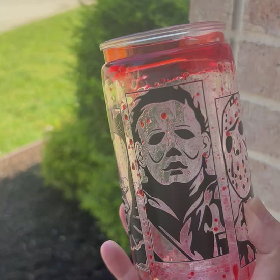 Sip if you dare. 🩸 Our Killer’s Cup is a chilling must-have for any true horror fan. With blood-red liquid, floating glitter, and slasher-inspired artwork, this snow globe tumbler looks like it was pulled straight out of your favorite scary movie.