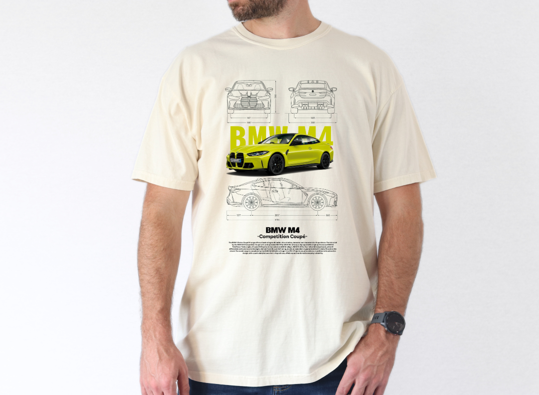 Engineered for enthusiasts, the M4 Blueprint shirt showcases the legendary BMW M4 with detailed car specs in a bold, blueprint-inspired design. This tee is a tribute to precision German engineering and the raw performance that defines the M legacy. Perfect for car meets, track days, or simply repping your love for automotive excellence.