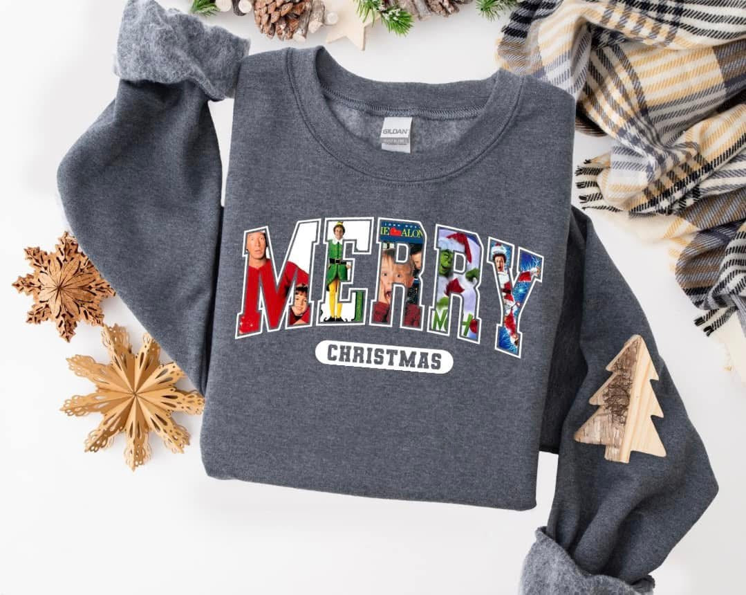Get ready to cozy up with your favorite holiday classics! 🎄 This festive sweatshirt brings together the most iconic Christmas movie moments into one merry design. From laugh-out-loud scenes to heart-warming favorites, each letter in MERRY celebrates a different movie that makes the season bright.
