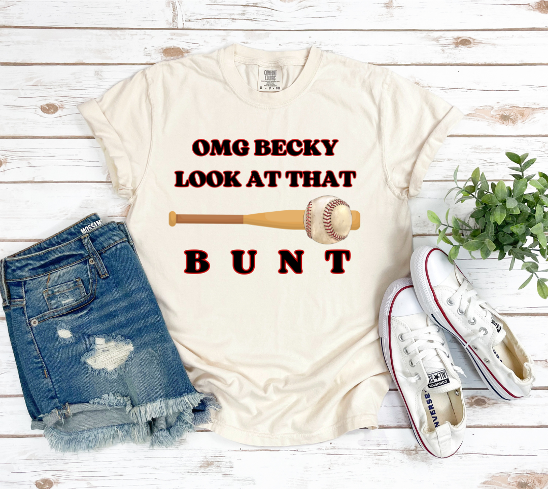 OMG Becky, Look at That Bunt is the perfect tee for softball and baseball lovers who appreciate a good play and a great pun. Whether you're in the dugout, in the stands, or just living that diamond life, this shirt brings the sass, the humor, and the game-day spirit.