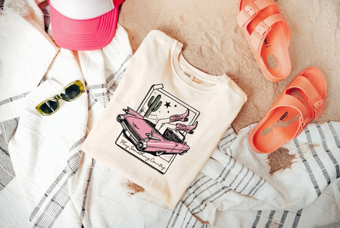 Crank up the volume and let the twang take over—because the Play Something Country tee is here for the good times. Whether you're two-steppin' at a honky-tonk, tailgating before a show, or just cruising with the windows down, this shirt sets the vibe before the music even starts.