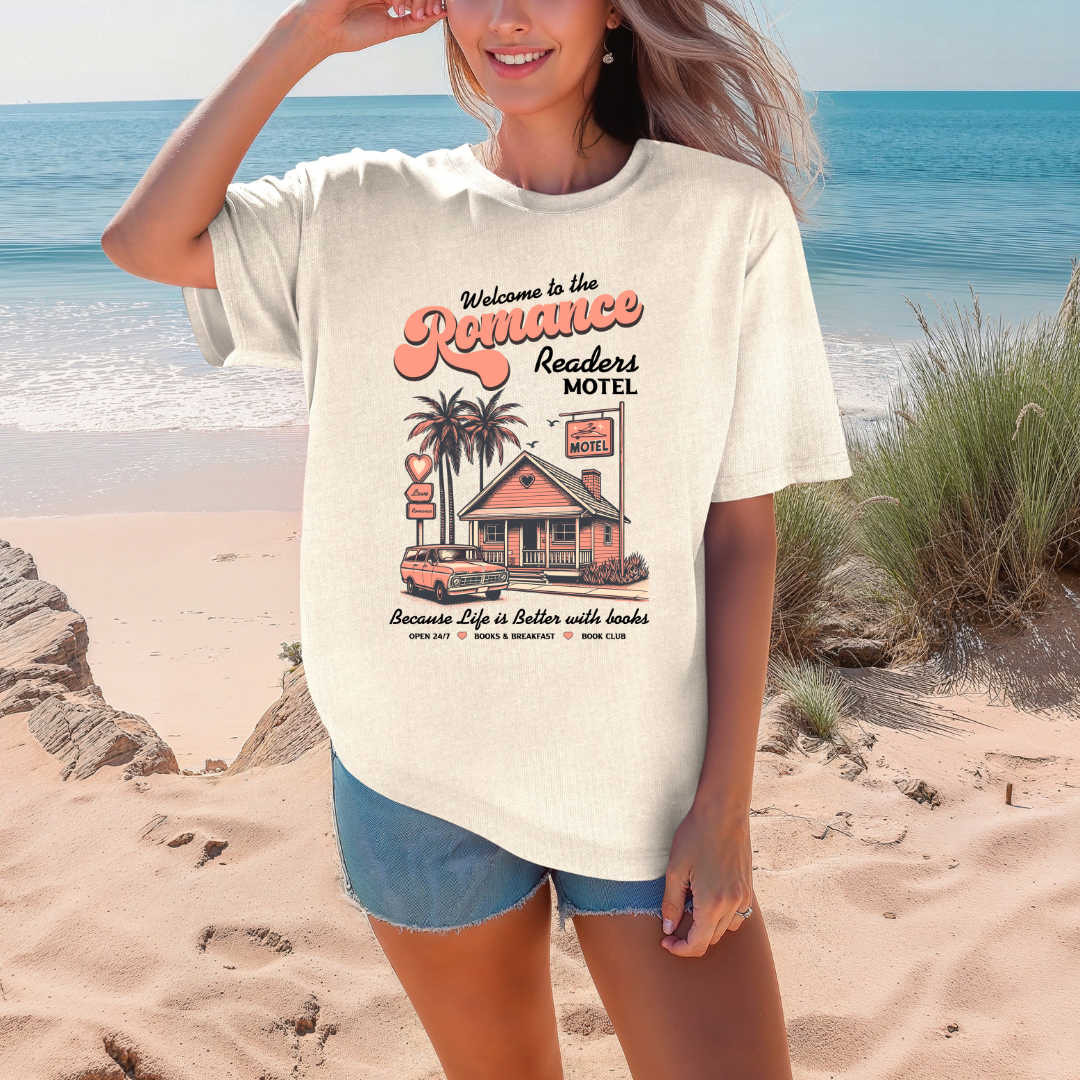 Escape to a world of love stories and literary bliss with the Romance Readers’ Retreat tee. Featuring a charming design of a cozy hotel and a car parked out front, this shirt is perfect for book lovers who dream of getting lost in romance novels. Whether you're curled up with a good book or daydreaming about your next romantic getaway, this tee is your ultimate retreat.