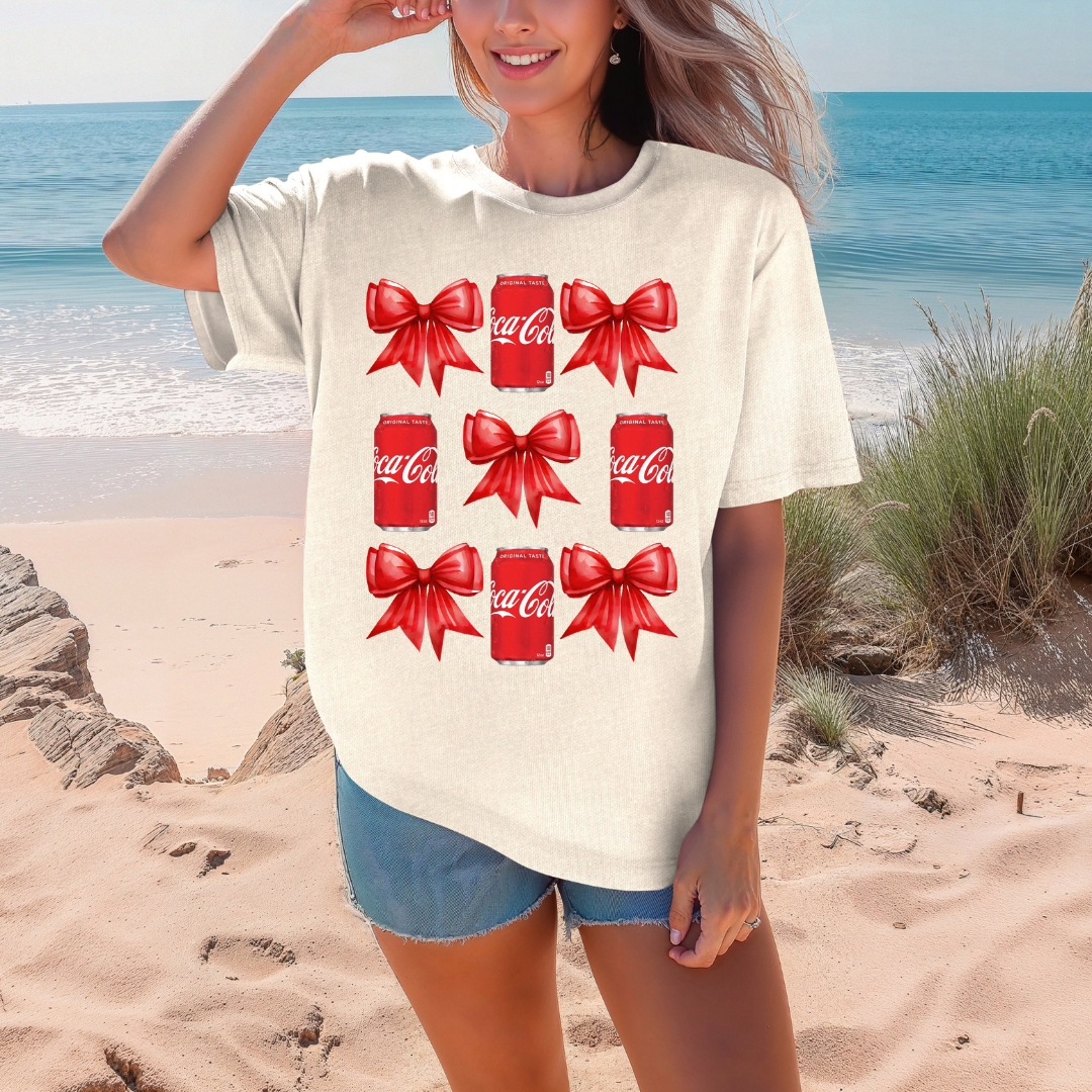 Pop, fizz, and attitude! The Sassy with a Side of Coke tee brings all the bubbles and boldness with a perfect mix of coquette bows and classic Coke cans. Whether you’re sippin' on something sweet or just serving looks, this shirt is all about the sass. A little sugar, a little spice, and a whole lot of personality — just like you.