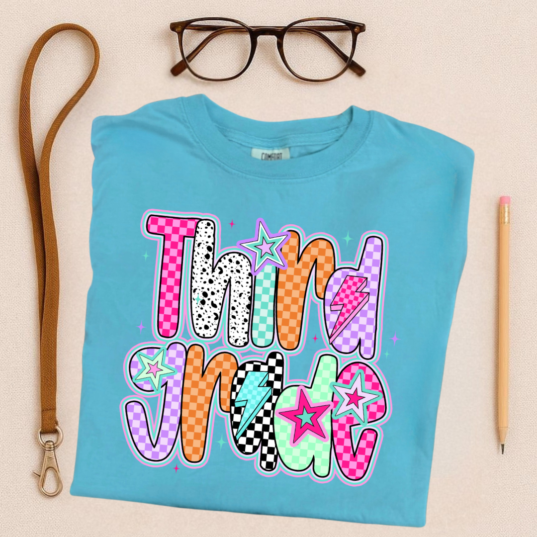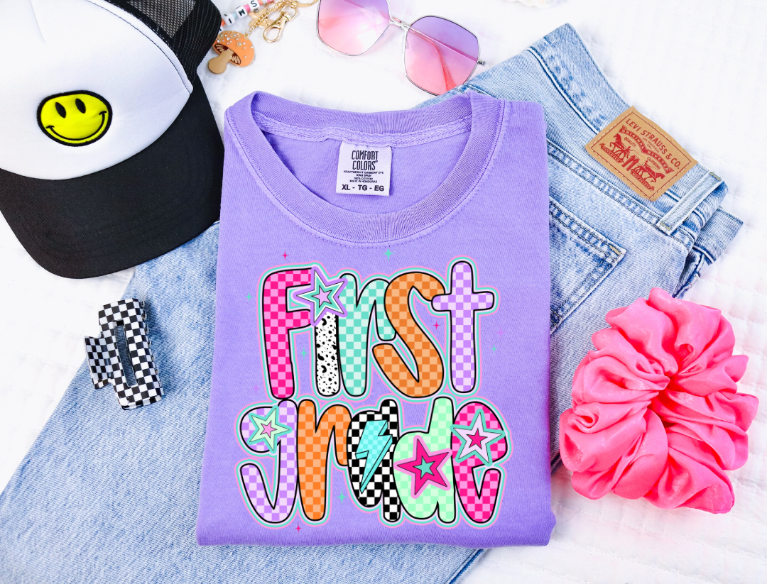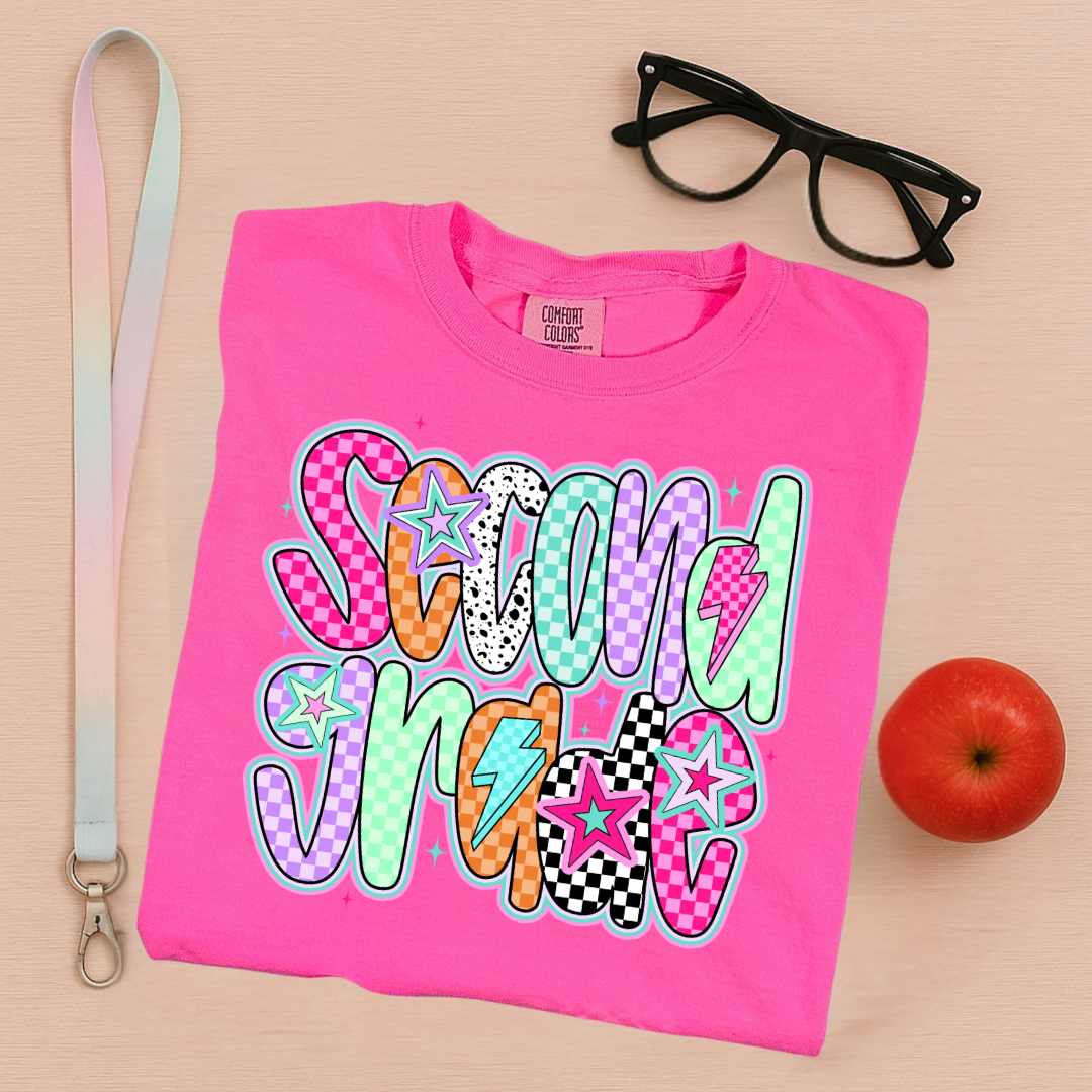 Turn up the volume on your school style with School Rock Vibes! This bold and colorful tee is packed with personality—featuring eye-catching patterns, lightning bolts, and star power that’s perfect for students, teachers, and staff alike. Whether you're rocking the first day or just bringing the energy all year long, this shirt is your backstage pass to classroom cool.