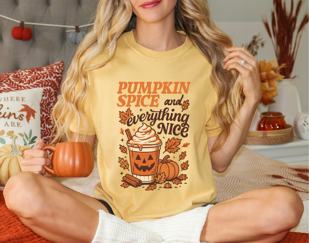 βππ Spice Season Vibes Tee β Because fall just isnβt fall without pumpkin spice! Featuring a festive latte design surrounded by pumpkins, leaves, and warm cinnamon accents, this tee is the perfect match for your autumn cravings. Soft, comfy, and full of seasonal charm, itβs ideal for coffee runs, pumpkin patch outings, or cozy nights in. Show off your love for all things pumpkin spice with this must-have fall favorite.