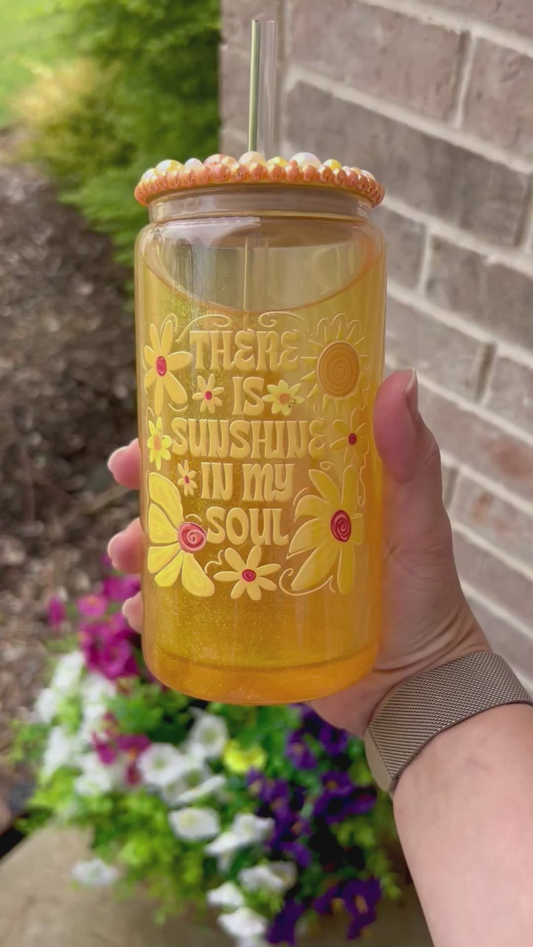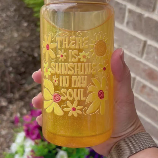 Sip a little sunshine with every swirl! This vibrant snow globe tumbler brings the glow of golden hour to your day with its bright yellow shimmer, playful floating glitter, and uplifting message: “There is sunshine in my soul.” Perfect for cold drinks, iced coffee, or just adding joy to your routine. Durable, reusable, and bursting with good vibes—this cup is your new go-to for sipping happy.