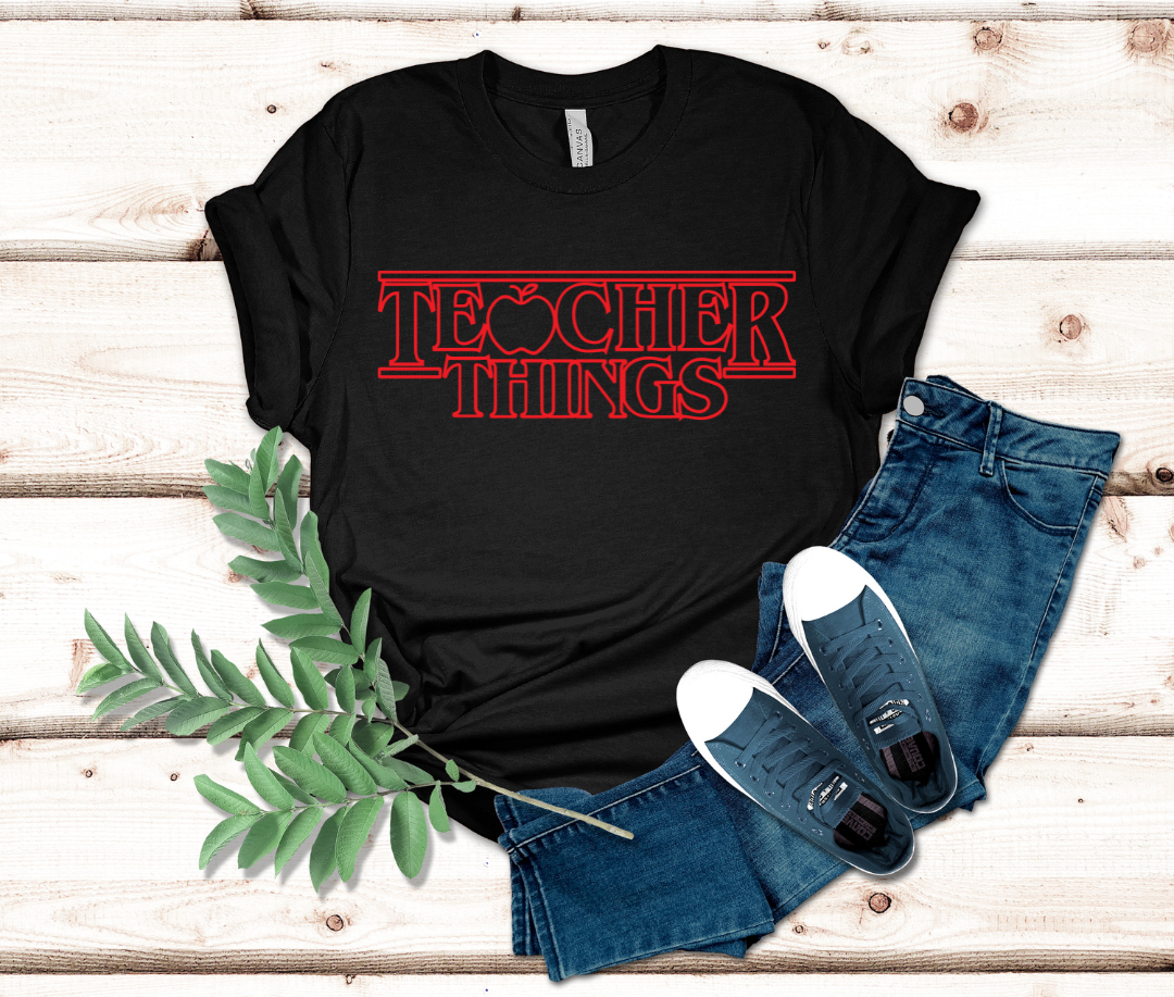 When the school bell rings, it's time for a little teacher magic — because "Teacher Things" are out of this world! Inspired by the mind-bending, adventure-filled world of Stranger Things, this tee brings a dose of supernatural flair to your everyday teaching duties. From chalkboards to field trips, you'll be facing down the upside-down and taking on those lesson plans like a pro.