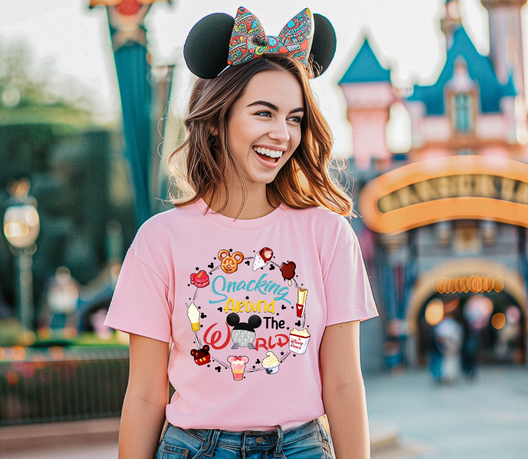 Take your taste buds on the ultimate adventure with The Magical Munch Tour! This playful tee celebrates all your favorite park snacks—from churros and Dole Whip to popcorn and pretzels—served with a sprinkle of magic. Perfect for foodies, park-hoppers, and anyone who believes calories don’t count at Disney!