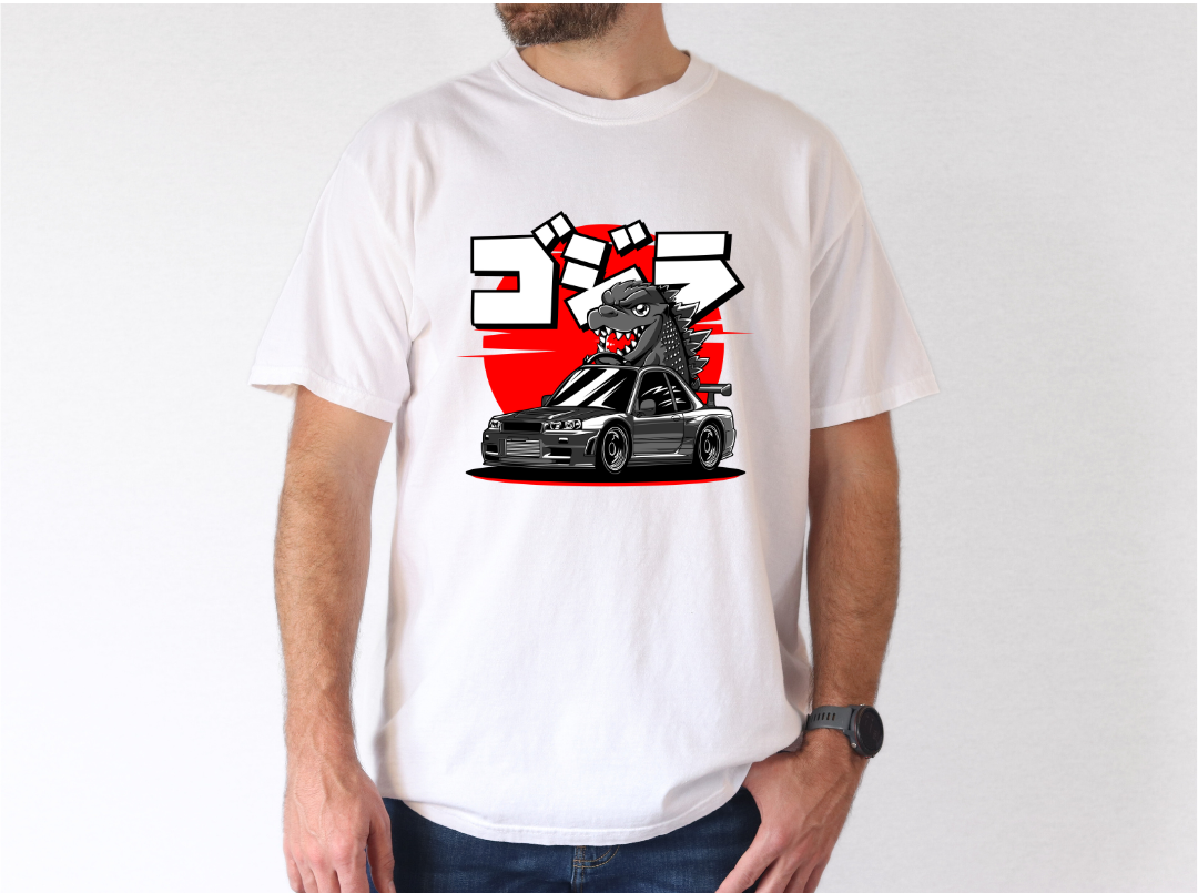 Straight from the streets of Shibuya and built for speed, the Tokyo Terror tee is where JDM culture meets kaiju chaos. Featuring a turbocharged monster ride with a not-so-subtle nod to the legendary “Godzilla” GT-R, this shirt is for the drivers who rule the night and leave tire marks on tradition.